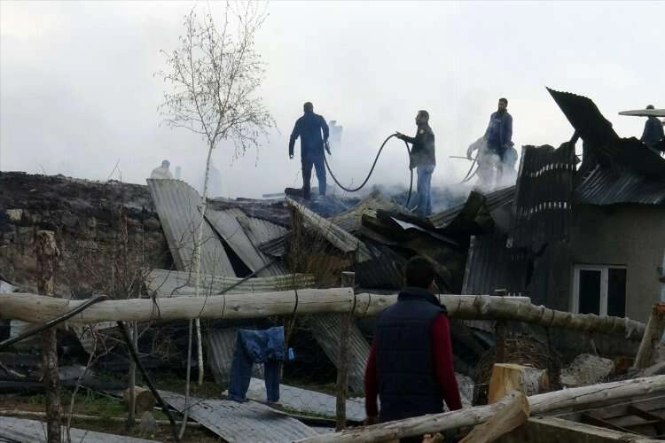 GÖRÜNTÜ DÖKÜMÜ : - Yangın çıkan yer - İtfaiye ekipleri ve vatandaşlar - Yangın söndürme çalışması - Yangından zarar gören ev ve samanlıklar - Köyün sakinlerinden Ömer Üzüm'ün konuşması Kars'ta çıkan yangında 5 ev, ahır ve samanlıklar zarar gördü KARS (AA) - Kars'ın Sarıkamış ilçesine bağlı Bozat köyünde çıkan yangında 5 ev, ahır ve samanlıklar zarar gördü. Necat Aslan'a ait evin çatısında henüz belirlenemeyen nedenle yangın çıktı. Rüzgarın da etkisiyle kısa sürede büyüyen yangın, bitişikteki Reşat ve Abdullah Aslan ile Nizamettin ve Ziyattin Sadiy'e ait ev, ahır ve samanlıklara sıçradı. Köylülerin durumu bildirmesi üzerine bölgeye itfaiye, sağlık ve jandarma ekipleri sevk edildi. Yaklaşık 2 saatte yangını söndüren itfaiye ekiplerinin soğutma çalışması sürüyor. Yangında, 5 ev, bu evlere ait ahır ve samanlıklar ile buralardaki arpa, buğday ve samanlar kullanılmaz hale geldi. Köyün sakinlerinden Ömer Üzüm, AA muhabirine, yangının bir anda evleri sardığını belirterek, "Yangın çıkar çıkmaz kendimiz hortumlarla müdahale ettik ama başa çıkamadık, duman olunca uzaklaştık. Hayvanları kurtardık ama evler, ahırlar, samanlıklar, arpa, buğday kullanılmaz hale geldi." dedi.
