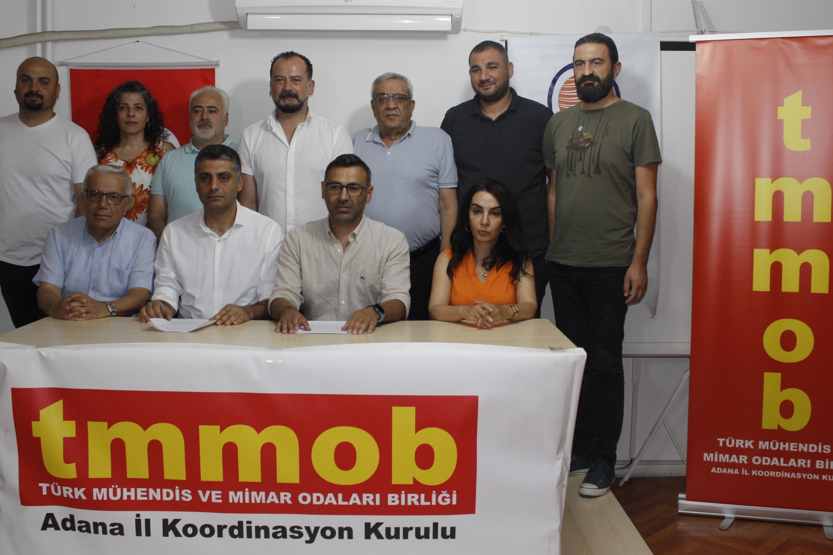 Çevre Mühendisleri Adana Şube Başkanı Deniz Orhan, “Geçtiğimiz yüzyıl, doğaya karşı yapılan yıkımların ve vahşetin izlerini taşıyor. Bu vahşet, "ekokırım" olarak adlandırılan ve geri dönüşü imkânsız zararlara yol açan bir dizi eylemle kendini gösteriyor. Nükleer Silahlar ve Kimyasal Savaşlar: İlk ekokırım örnekleri, Pasifik Okyanusu'nda yapılan nükleer silah denemeleri ve Vietnam Savaşı'nda ABD'nin ormanları kurutmak için kullandığı kimyasal silahlardır. Bu barbarca eylemler, sadece insan hayatını değil, deniz ve orman ekosistemlerini de yok ederek tarihe kara bir leke olarak kazınmıştı” diyerek basın açıklamasına başladı.