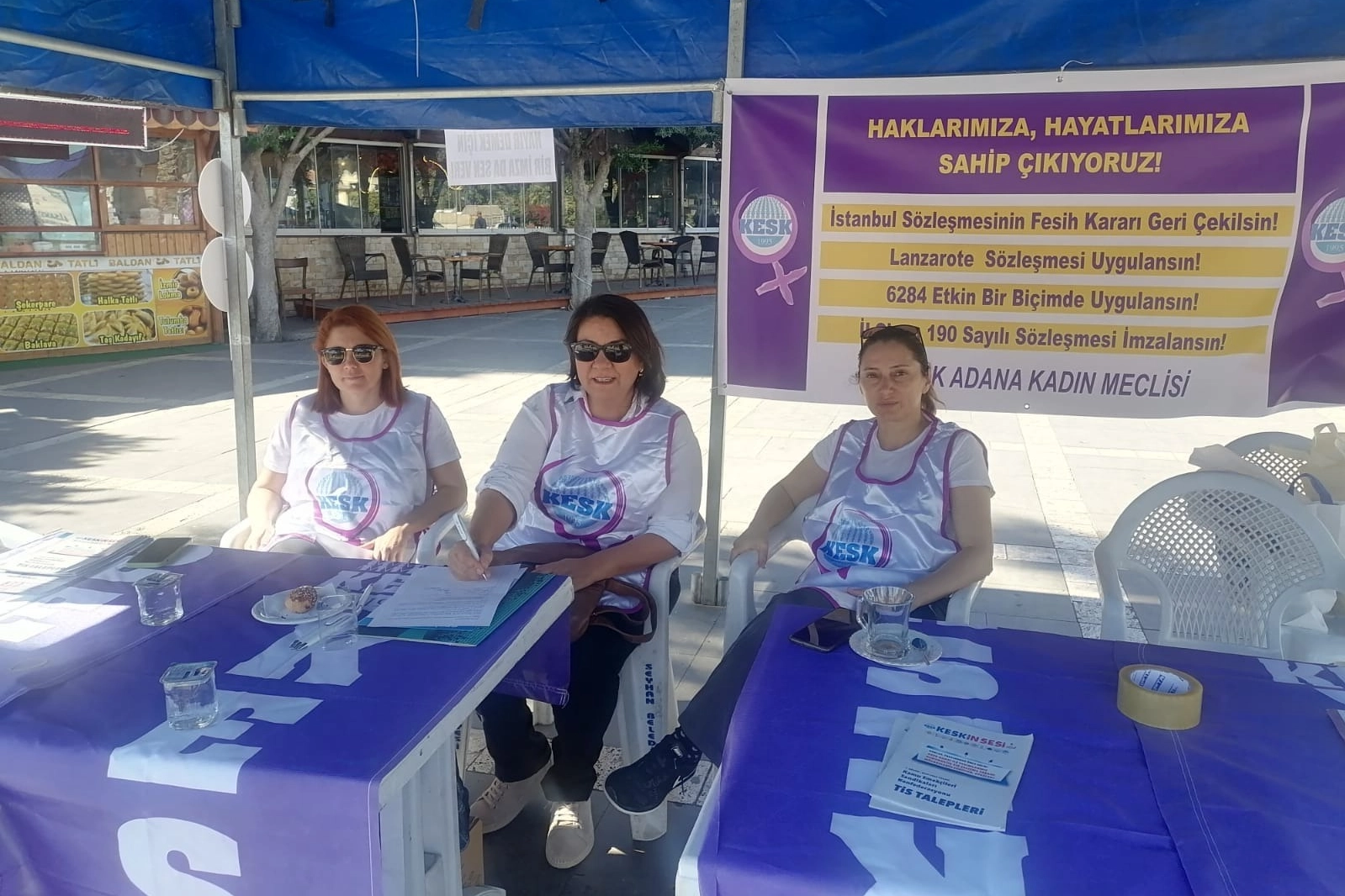Adana’da artan kadına yönelik şiddet ve kadın cinayetleri, kadın örgütlerinin tepkisini artırmaya devam ediyor. KESK Adana Kadın Meclisi, bu duruma dikkat çekmek ve kadına yönelik şiddetin artmasına yol açan koşulların kaldırılması amacıyla Duygu Kafe Gençlik Meydanı’nda bir imza kampanyası başlattı. Kampanyanın ilk dakikalarından itibaren Adanalı kadınlar yoğun ilgi gösterdi.