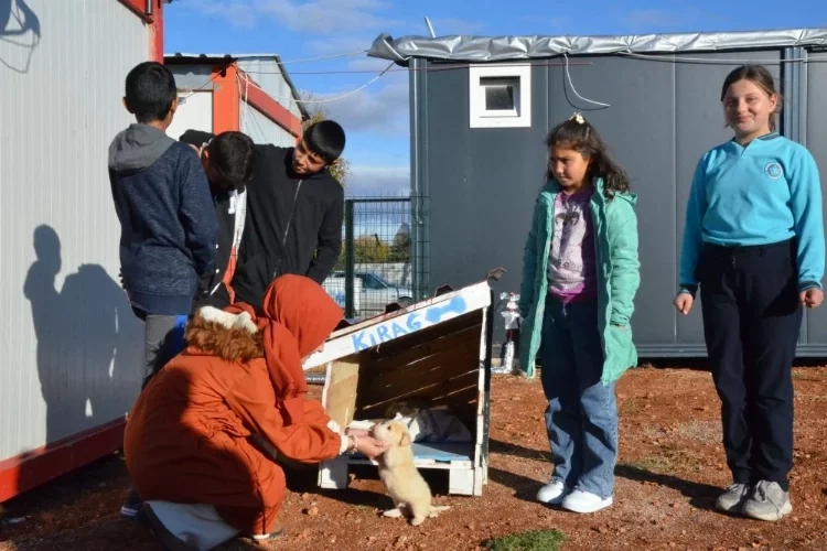 Çekmeköy Konteyner Kentteki Afşin Sosyal Hizmetler Müdürlüğü Çocuk Psiko-Sosyal Destek Konteyner'inde eğitim alan çocuklar, teneffüste buldukları köpek için kulübe yaptı.