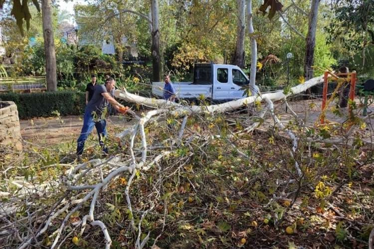 İlçede dün etkili olan rüzgarda, Atatürk Parkı'ndaki bazı ağaçlar devrildi.