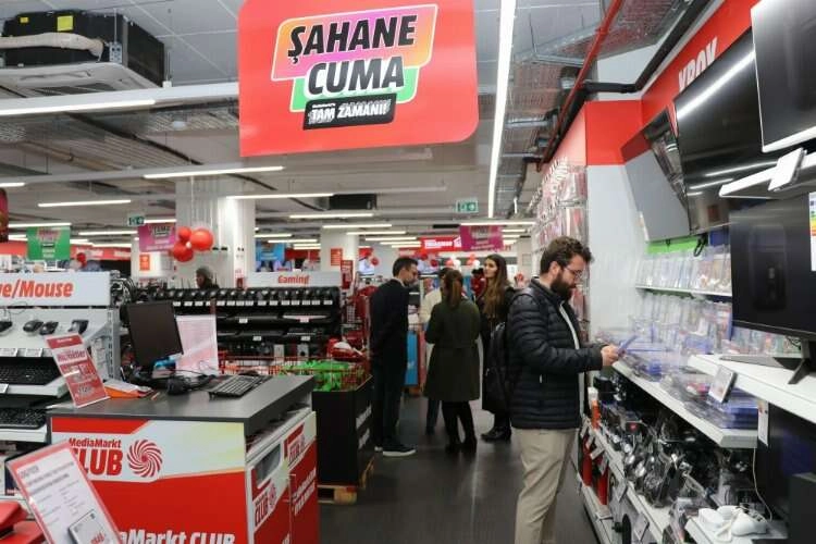 Çağla Şıkel ve Enes Arıkan'ın mağaza girişindeki brandayı yırtmasıyla başlayan "Şahane Cuma" kampanyası kapsamında, MediaMarkt mağazalarıyla mediamarkt.com.tr ve mobil uygulamada geçerli olacak binlerce üründe "şahane" indirimler yapıldı.