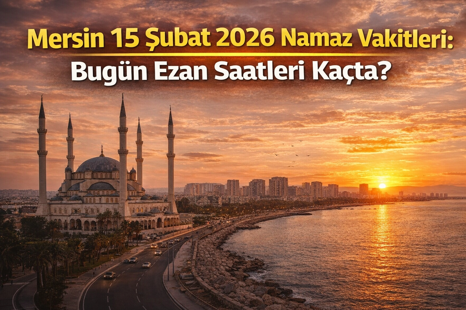 Mersin namaz vakitleri 15 Şubat 2026 Pazar günü ibadetlerini zamanında yerine getirmek isteyen vatandaşlar tarafından araştırılıyor. Güncel verilere göre Mersin’de bugün imsak, öğle, ikindi, akşam ve yatsı ezanı saatleri belli oldu. İşte il il namaz vakitleri listesinde Mersin için açıklanan güncel saatler…