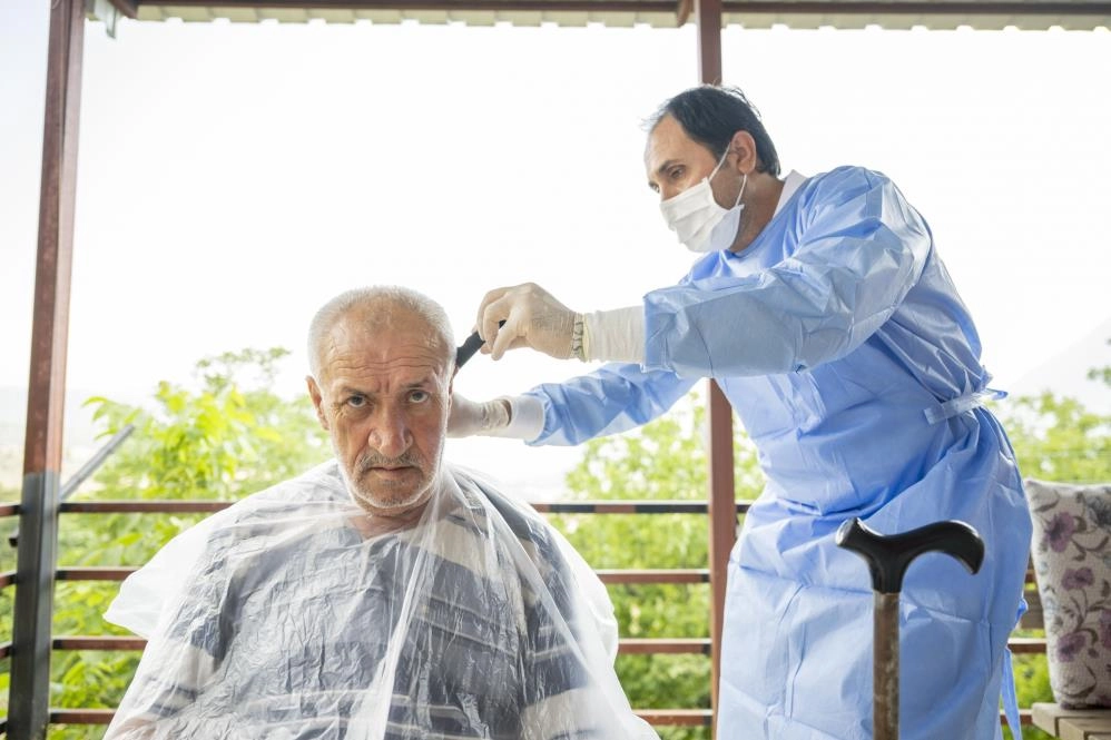 Sağlık İşleri Dairesi Başkanlığına bağlı Evde Sağlık ve Bakım Birimi personeli Şeyma Sarıtaş, Cuma Çaylı’ya 15 günde bir evde bakım hizmeti verdiklerini belirtti. Sarıtaş, "Hastanın yürüyüp yürümediğini dikkate alarak, kişisel bakımını yapıyoruz. Cuma amcamız tansiyon hastası olunca beyni pıhtı atmış ve yatalak olmuş. İlk zamanlar Cuma amcamızı tekerlekli sandalye ile banyoya götürüyorduk. Saç ve sakal kesimi, banyosu, tırnak kesimi yapılıyor ve üzeri değiştiriliyor" dedi.