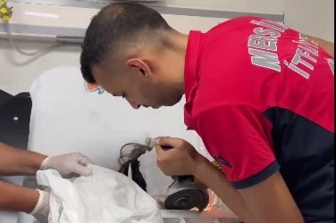 Yaralı çocuk olay yerine giden Mersin Büyükşehir Belediyesine bağlı itfaiye ekiplerinin kestiği demir ile birlikte Mersin Üniversitesi Tıp Fakültesi Hastanesi'ne kaldırıldı. Çocuğun ameliyata alınması amacıyla çene kısmından giren demir, doktor gözetiminde alt kısmından kesildi. Çocuğun hastanede ameliyata alınacağı öğrenildi.
