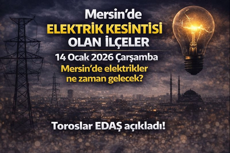 Mersin'de elektrik kesintisi olan ilçeler listesiToroslar Elektrik Dağıtım A.Ş. (Toroslar EDAŞ) tarafından gelen açıklama sonrası 14 Ocak 2026 Çarşamba günü internette araştırılıyor. Mersin elektrik kesintisi listesinde Akdeniz, Yenişehir, Mezitli, Erdemli dahil 13 ilçe bulunuyor. İşte Toroslar EDAŞ’tan yapılan açıklama ile14 Ocak 2026 Çarşamba günü Mersin elektrik kesintisi detayları…