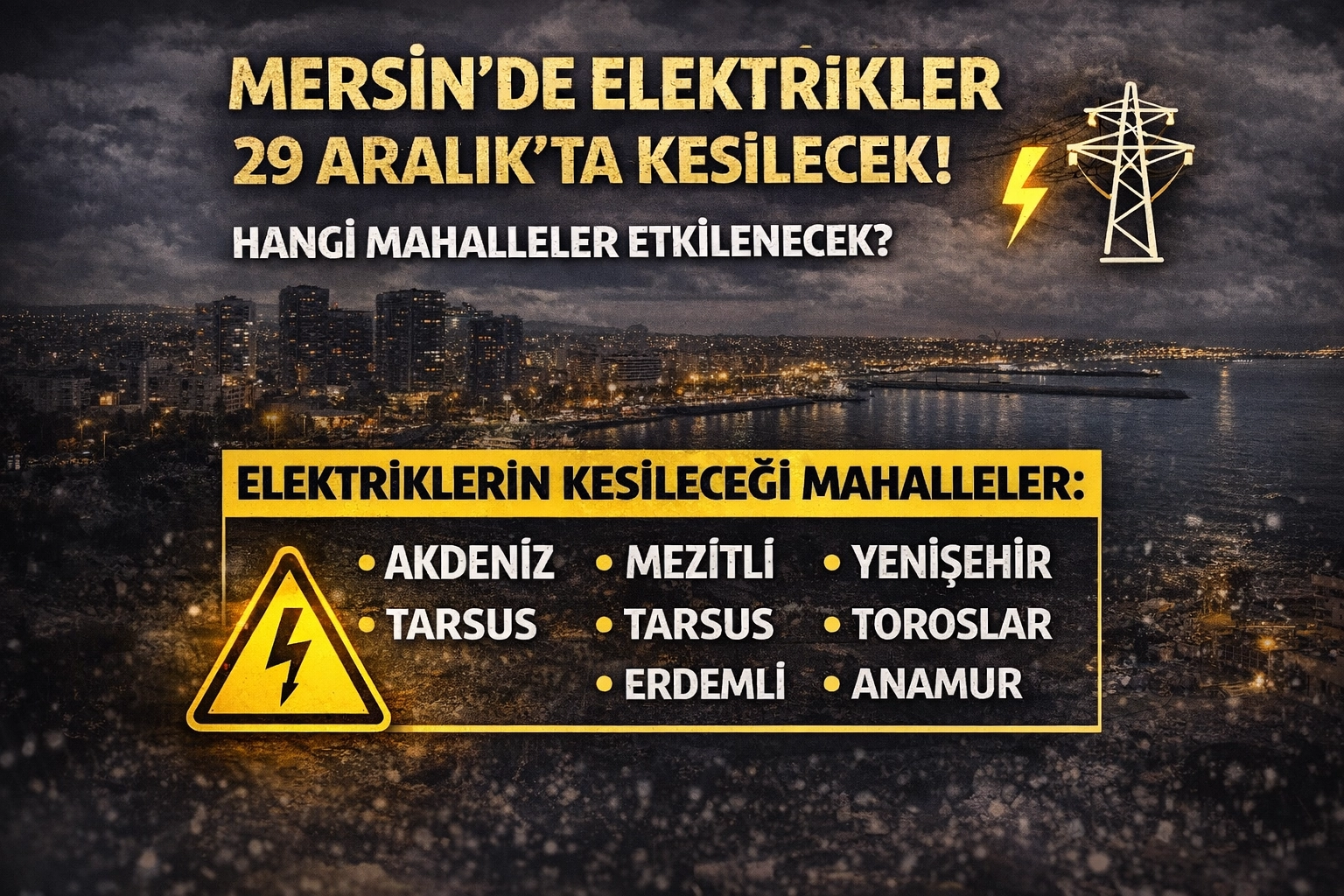 Mersin’de planlı elektrik kesintisi vatandaşları hazırlıksız yakalayacak mı? Ne zaman elektriksiz kalacağız, hangi bölgelerde şebeke çalışmaları yapılacak? Mersin’de Toroslar EDAŞ, 29 Aralık 2025 Pazartesi günü için planlı elektrik kesintisi programını açıkladı. Akdeniz, Anamur, Mezitli ve Silifke başta olmak üzere birçok mahallede şebeke iyileştirme çalışmaları nedeniyle gün boyu elektrik verilemeyecek. Vatandaşlar “Elektrikler ne zaman gelecek?” sorusunun yanıtını merak ediyor. Mersin elektrik kesintisi...