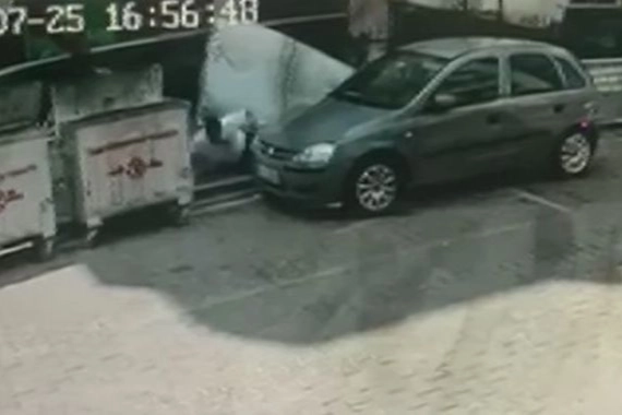 Öte yandan, boş su deposunun, Öztürk'ün üzerine düşmesi bir iş yerinin güvenlik kamerasınca kaydedildi.