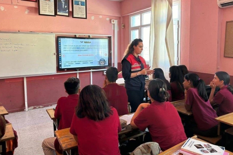 Mersin'de jandarma ekipleri, lise öğrencilerine yönelik siber farkındalık eğitimi düzenledi.