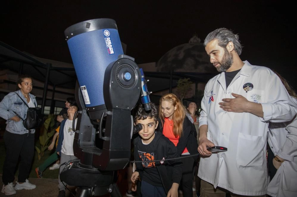 Mersin Büyükşehir Belediyesi İklim Değişikliği ve Sıfır Atık Dairesi Başkanı Dr. Kemal Zorlu, Mercan 100. Yıl İklim ve Çevre Bilim Merkezi’nin her zaman kalabalık ve cıvıl cıvıl olduğundan söz ederek, ‘Gece Gözlem Etkinliği’ hakkında da bilgi verdi. Zorlu, vatandaşların katılımıyla ilk gözlem şenliğini gerçekleştirdiklerini ve ay gözlemi yaptıklarını ifade ederek, “100. Yıl İklim ve Çevre Bilim Merkezimiz oldukça kalabalık. Burada gözlem ve ay ile ilgili bilgilendirmeler yapıldı. Sonra da çocukları ve ailelerini gözlem evimize aldık, gözlem için yukarıya geçtiler. Bahçede de 2 tane mobil teleskopumuz kuruldu. Bizim için gerçekten heyecanlı bir gün. Çünkü ilk gözlem şenliğimizi gerçekleştiriyoruz. Bundan sonrası için de yine hem merkezimizde hem de merkezimizin dışında, ışık kirliliğinin az olduğu yaylalarımızda gözlem şenlikleri gerçekleştireceğiz” dedi.