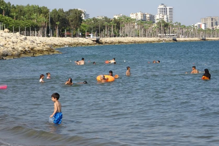 Meteorolojiden alınan bilgiye göre Mersin'de hava sıcaklığı 35 dereceye yükseldi ancak, yüksek nemin etkisiyle hissedilen sıcaklık 40 dereceyi geçti. Kentte tatile gitme imkanı bulamayan vatandaşlar ise serinlemek için farkı yöntemlere başvuruyor. Kimileri Atatürk Parkı'ndaki ağaç gölgelerinde serinlerken, kimileri de Pozcu plajında denize girerek serinledi. Sıcak havadan bunalan bir vatandaş ise köpeğiyle birlikte denize girdi.