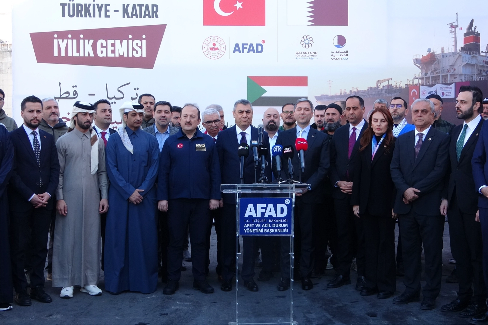 Türkiye Cumhuriyeti ile Katar Devleti iş birliğinde, AFAD Başkanlığı koordinasyonunda; Mersin Valiliğinin destekleri, Katar Kalkınma Fonu’nun katkıları ve 23 sivil toplum kuruluşunun iş birliğiyle hazırlanan yaklaşık 2 bin 600 ton insani yardım malzemesi, Mersin Uluslararası Limanı’ndan dost ve kardeş ülke Sudan’a uğurlandı.