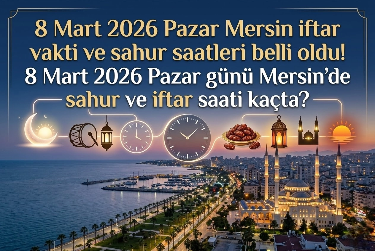 Mersin halkı, Ramazan ayının huzurunu yaşarken günlük ibadetlerini yerine getirmek için ezan saatlerini yakından takip ediyor. Diyanet İşleri Başkanlığı verilerine göre şekillenen 2026 Ramazan imsakiyesi kapsamında, Akdeniz'in incisi Mersin'de sofraların kurulacağı ve oruçların açılacağı anlar netleşti. Şehirdeki vatandaşlar, özellikle hafta sonuna denk gelen 8 Mart Pazar günü için hazırlıklarını bu saatlere göre planlıyor.