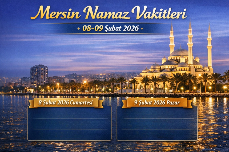Mersin’de yaşayan Müslümanlar için 8 ve 9 Şubat 2026 tarihleri namaz vakitleri açıklandı. Hangi vakitte ibadet edileceği merak edilenler için imsak, güneş, öğle, ikindi, akşam ve yatsı saatleri detaylı olarak paylaşıldı. Ramazan öncesi Şaban ayının 20. ve 21. gününe denk gelen bu tarihlerde Mersin namaz vakitleri şu şekilde