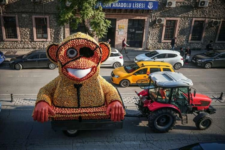 Festivalde sergilenmesi için 100 tonluk portakal, limon ve greyfurt birleştirilerek helikopter, deniz feneri, motosiklet, balina, ahtapot, ejderha ve ayı gibi figürler hazırlandı.