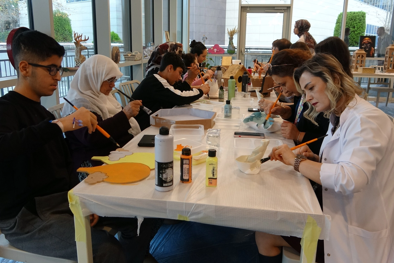HASTALAR VE ÇALIŞANLAR AYNI MASADA BULUŞTUFarklı yaş gruplarından katılımcıların ilgi gösterdiği etkinlikte hastalar ve hasta yakınları ile sağlık çalışanları aynı ortamda bir araya geldi. Birlikte üretmenin ve paylaşmanın mutluluğunu yaşayan katılımcılar hastane ortamında farklı bir deneyim yaşama fırsatı buldu. Renklerle yapılan çalışmaların ortaya çıkardığı eserler katılımcılara zorlu tedavi süreçlerinde moral ve motivasyon kaynağı oldu.