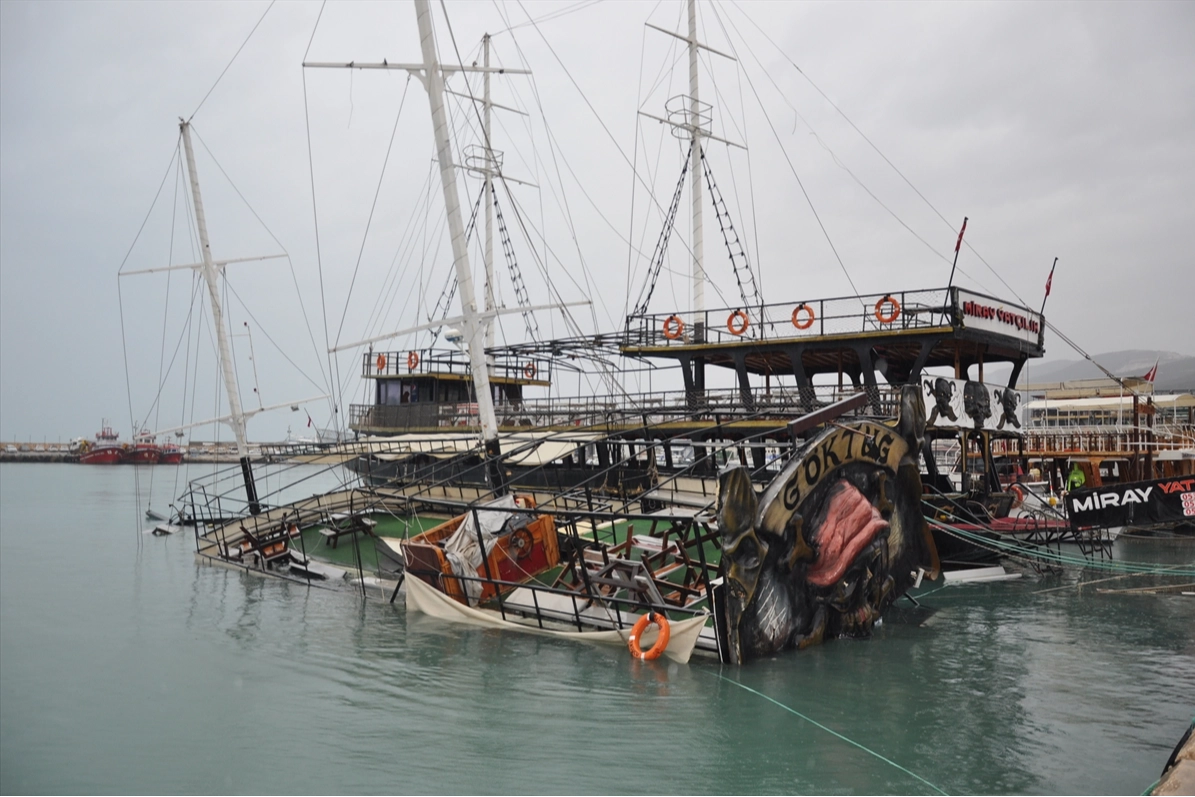 Mersin kıyı şeridinde gece saatlerinden itibaren etkisini artıran şiddetli fırtına, Silifke ilçesinde maddi hasara yol açtı. Taşucu Balıkçı Barınağı’nda demirli bulunan ve bölge turizminin önemli araçlarından biri olan 25 metre uzunluğundaki dev tur teknesi, fırtınanın oluşturduğu sert dalgalara dayanamayarak yan yattı. 130 yolcu kapasiteli olduğu öğrenilen tekne, kısa süre içinde sulara gömülerek barınak içerisinde battı.