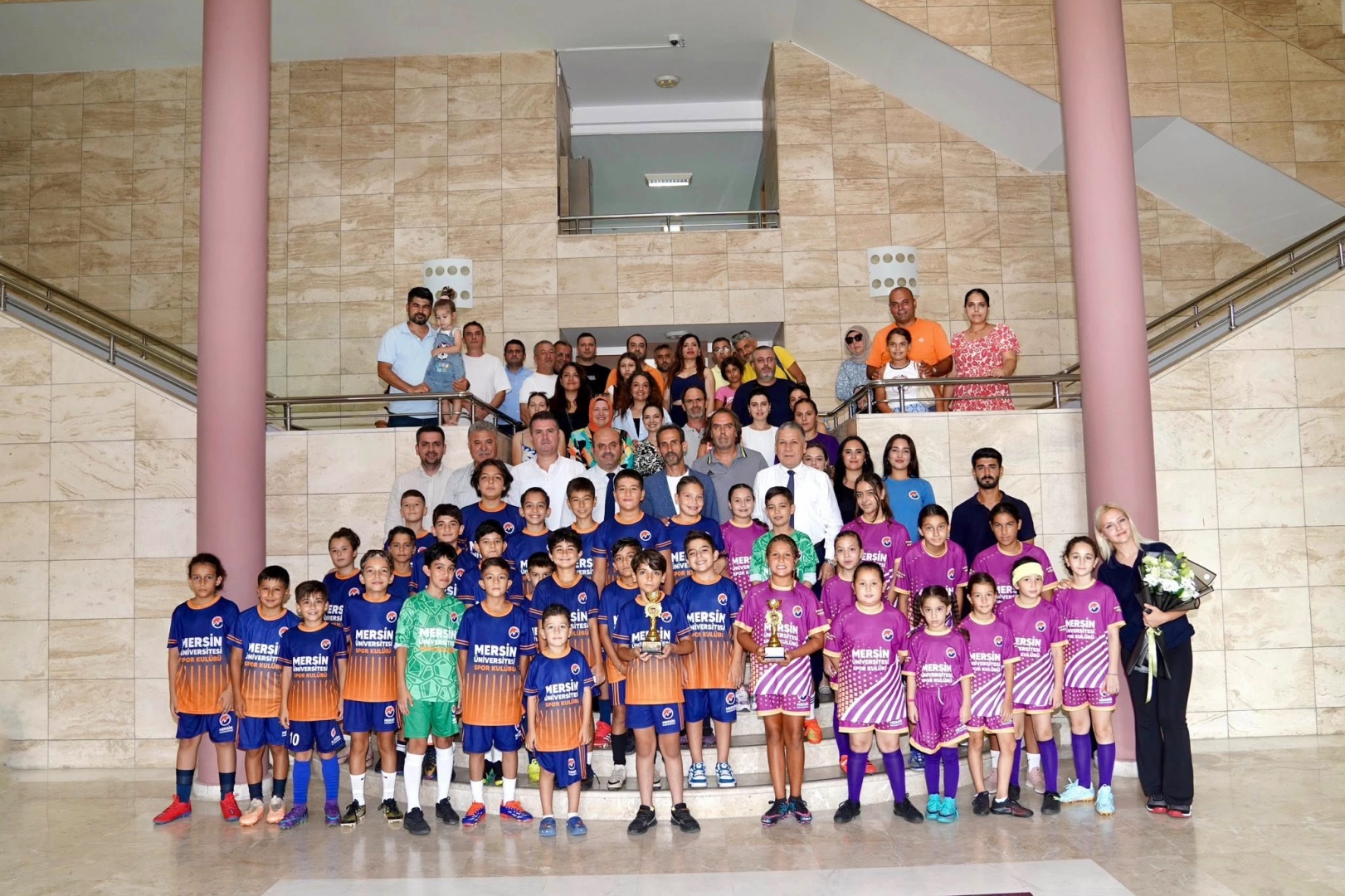 İLKHABER Gazetesi'nden Serhat Şanlı'nın haberine göre; Başarılarıyla öne çıkan Mersin Üniversitesi Spor Kulübü, Rektör Prof. Dr. Erol Yaşar’ı ziyaret etti. Ziyarette, 08-11 Temmuz tarihleri arasında Kütahya Tavşanlı’da, 11 farklı ilden takımların katılımıyla düzenlenen 7. Geleneksel Nejat Tülek Miniminikler Futbol Turnuvası’na katılan Erkek Futbol Akademisi sporcuları, kazandıkları 2 kupa ve 1 çanağı Mersin Üniversitesi Rektörü Prof. Dr. Erol Yaşar’a takdim etti. Rektör Prof. Dr. Erol Yaşar, tüm ekibi takdir ederek başarılarının devamını diledi.