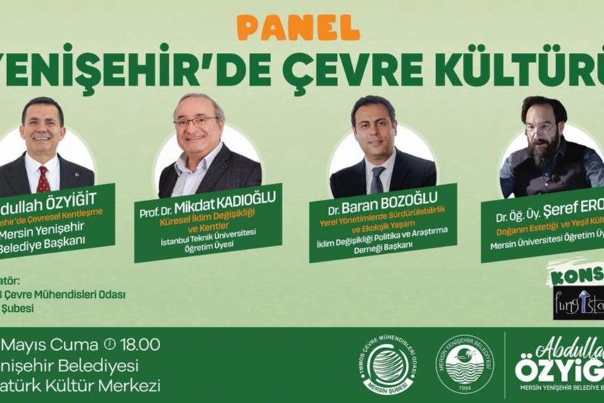 Yenişehir Belediyesi ve TMMOB Çevre Mühendisleri Odası Mersin Şubesi düzenleyeceği panel ile çevresel sorunlara dikkat çekmeyi, bu sorunların çözümüne yönelik stratejiler geliştirmeyi ve halkı bu konuda harekete geçirmeyi hedefliyor. 31 Mayıs Cuma günü saat 18.00’de Yenişehir Belediyesi Atatürk Kültür Merkezi’nde düzenlenecek panelde, Yenişehir Belediye Başkanı Abdullah Özyiğit 'Yenişehir’de Çevresel Kentleşme', İstanbul Teknik Üniversitesi Öğretim Üyesi Prof.Dr. Mikdat Kadıoğlu 'Küresel İklim Değişikliği ve Kentler', İklim Değişikliği Politika ve Araştırma Derneği Başkanı Dr. Baran Bozoğlu, 'Yerel Yönetimlerde Sürdürülebilir ve Ekolojik Yaşam' ve Mersin Üniversitesi Öğretim Üyesi Şeref Erol 'Doğanın Estetiği ve Yeşil Kültür' konusunda konuşma yapacak.
