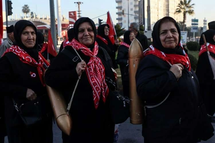 Yürüyüşte, Anadolu kadınının fedakarlığını yansıtmak için temsili top ve tüfek taşıyan kadınlar da yer aldı.