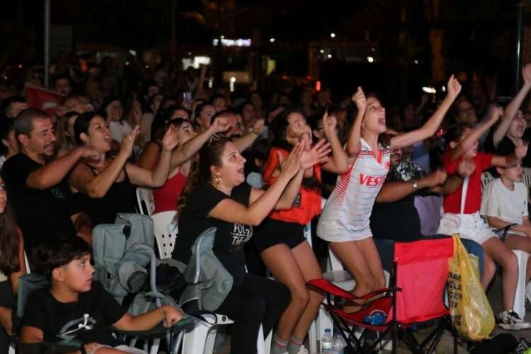 Mezitlililer, karşılaşmayı Menderes Mahallesi’ndeki Demokrasi Meydanında belediye tarafından kurulan dev ekranda izledi. Bazı vatandaşlar, Türkiye formasıyla katıldığı alanda ‘Filenin Sultanları’nın aldığı her sayı için alkış ve tezahüratlar eşliğinde destek verdi. Millilerin şampiyonluğunu büyük bir sevinçle kutlayan Mezitlililer, hep bir ağızdan ‘İzmir Marşı’nı okudu. A Milli Kadın Voleybol Takımı sayesinden Türkiye’nin tarihi bir zafere imza attıklarını belirten Mezitli Belediye Başkanı Neşet Tarhan, “Atatürk’ün kızları CEV Avrupa Şampiyonasında Sırbistan’ı yenerek altın madalyanın sahibi oldu. 2019 yılında yaşadığımız hüsran bu yıl şampiyonlukla taçlandı. Kadınlarımız isterse her şeyi başarır. Bizler de filenin sultanlarının bu şampiyonluğunu dev ekrana taşıdık. İlçedeki vatandaşlarımızın yoğun katılımını görmek bizleri fazlasıyla memnun etti. Milli takımımızın şampiyon kadınları başarısını olimpiyat elemelerinde de göstereceklerinden hiç kuşkum yok. A Milli Kadın Voleybol Takımımıza başarılarının devamını diliyorum” dedi.