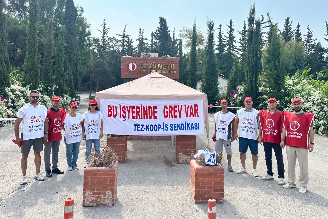 Türk-İş’e bağlı Tez Koop-İş Sendikası’nın örgütlü olduğu Ortadoğu Teknik Üniversitesi’nde (ODTÜ) bir süredir devam eden toplu iş sözleşmesi (TİS) görüşmeleri anlaşmazlıkla sonuçlandı. Sendika, bunun üzerine ODTÜ'nün Mersin kampüsünde bugün itibarıyla grev başlattı. Kampüs girişine "Bu İşyerinde Grev Var" pankartları asan işçiler, talepleri karşılanana kadar grevi sürdüreceklerini açıkladı.