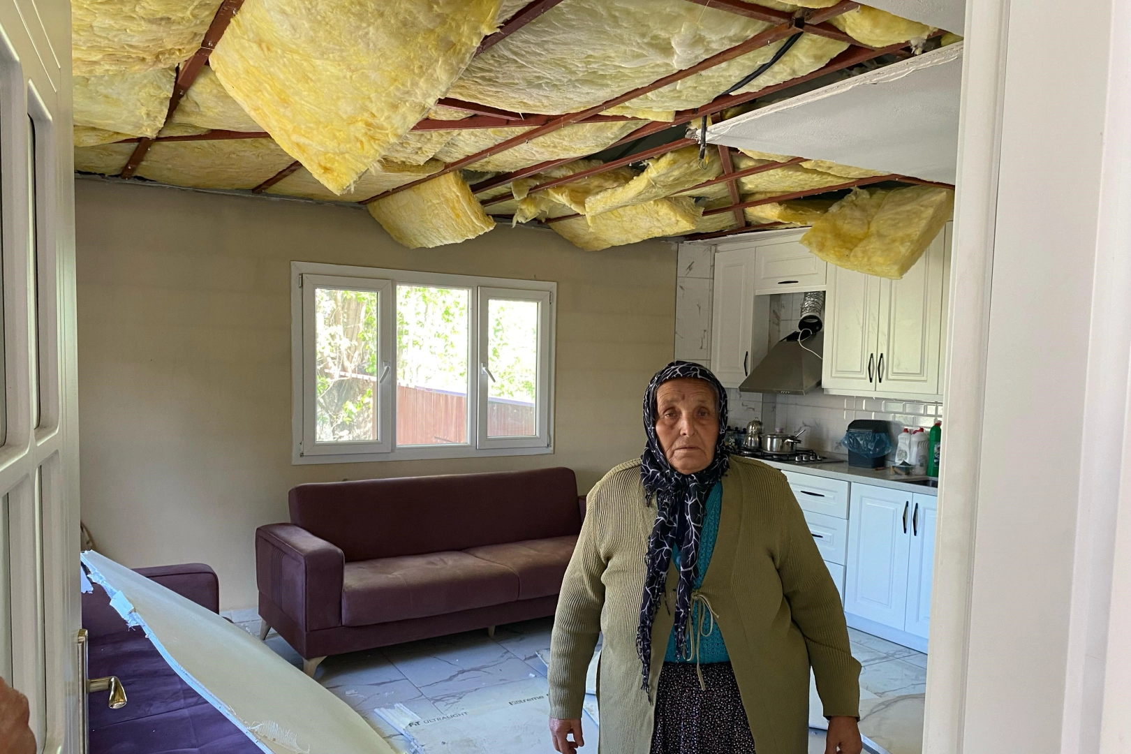 Osmaniye'de depremde evi yıkılan Zübeyde Can'ın çocukları tarafından yaptırılan yeni yuvasının tavanı üzerine çöktü. Hayallerle kavuştuğu evinin tavanı çöken Can, deprem korkusunu yeniden yaşadığını söyledi.