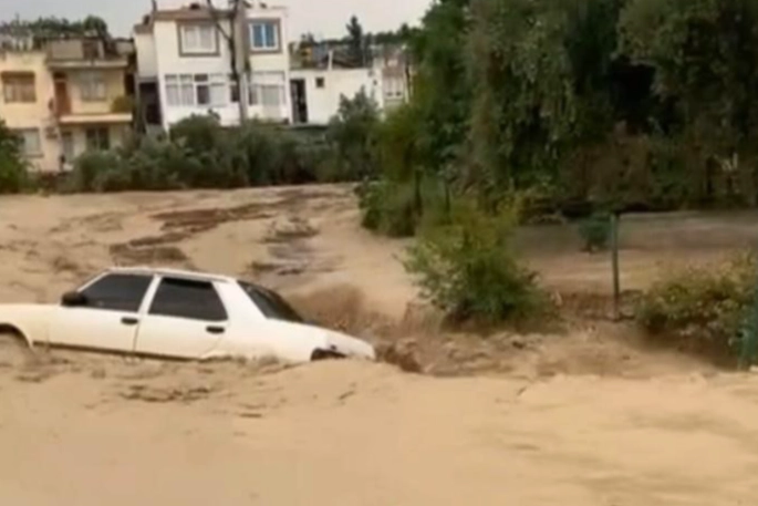 Kadirli ilçesinde akşam saatlerinde aniden başlayan ve etkisini giderek artıran sağanak hayatı felç etti. Yağış nedeniyle su taşkınları meydana gelirken, yollar göle döndü. Şehit Mustafa Yağız Mahallesi'nde bulunan Bülbül Deresi kenarındaki onlarca araç sel sularına kapılarak kullanılamaz hale geldi. O anlar ise vatandaşların cep telefonu kamerasına yansıdı.