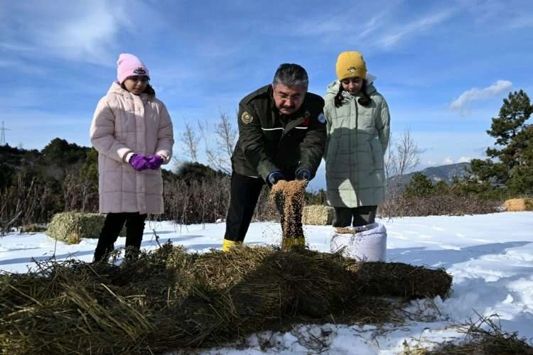 OSMANİYE (AA) - Osmaniye Valisi Erdinç Yılmaz, ailesiyle, kar yağışı nedeniyle yiyecek bulmakta zorlanan yaban hayvanları için doğaya yem bıraktı.