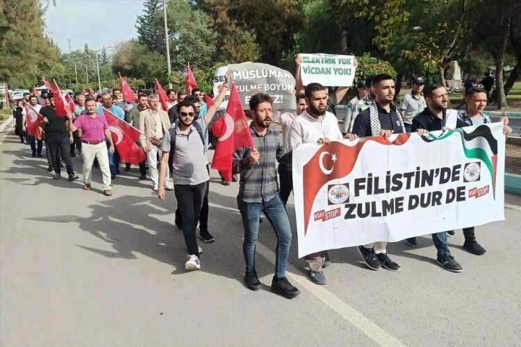 OSMANİYE (AA) - Osmaniye Korkut Ata Üniversitesi (OKÜ) öğrencileri, İsrail'in Gazze'deki saldırılarına tepki için yürüyüş düzenledi.