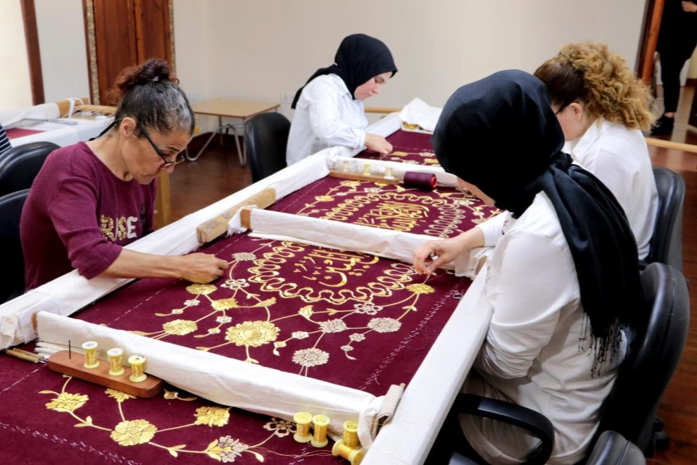 Adana Olgunlaşma Enstitüsü’nde usta öğreticiler, Osmanlılarda mezar sandukalarının üzerine örtülen örtü olarak bilinen puşideleri, Maraş işi tekniğiyle ilmek ilmek işliyor.