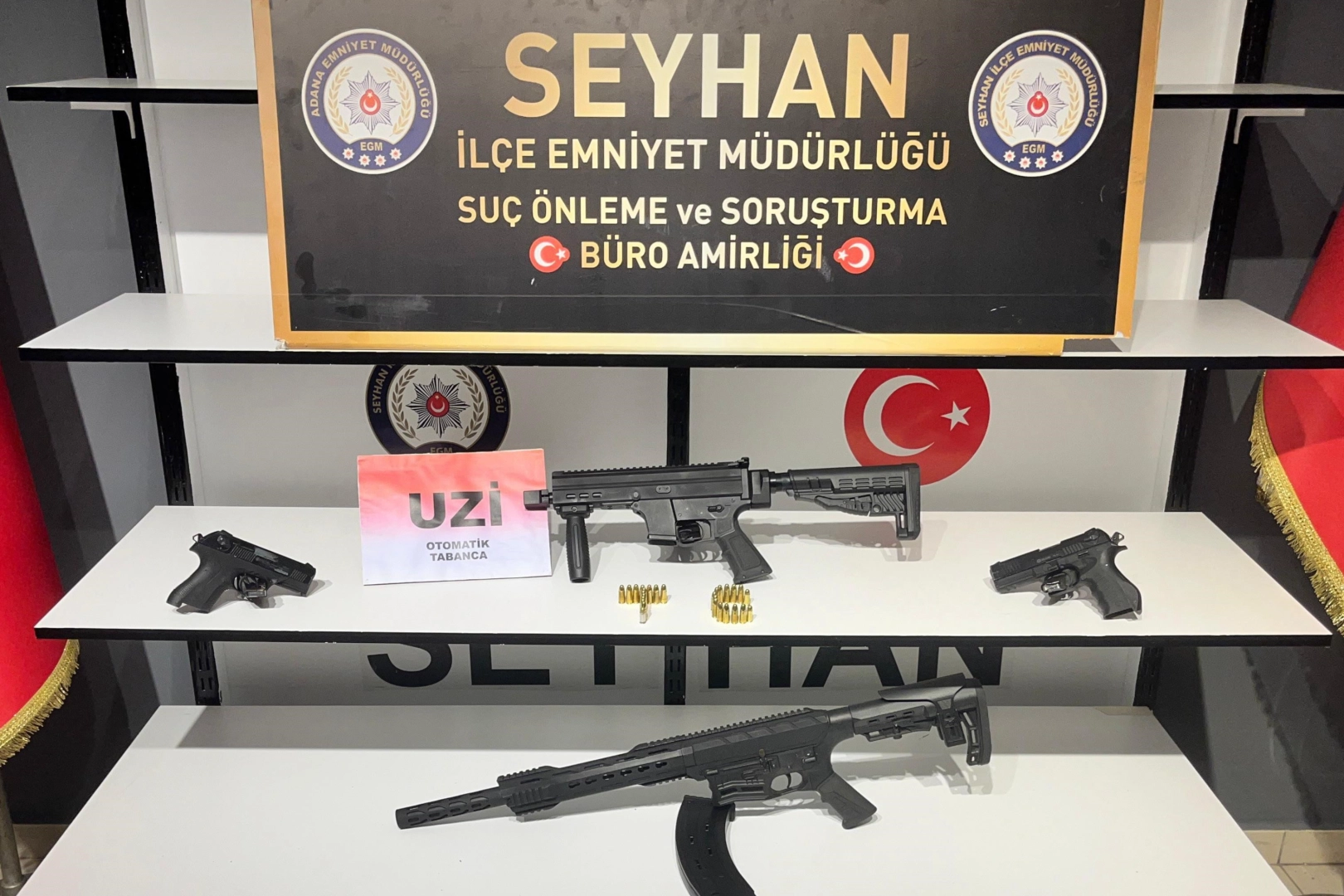 Adana Emniyet Müdürlüğü Seyhan İlçe Emniyet Müdürlüğüne bağlı Seyhan Suç Önleme ve Soruşturma Büro Amirliği ekipleri, Şakirpaşa Mahallesinde iki katlı müstakil evde oturan Orhan A. ve oğlu Ömer A.’ın evinde ruhsatsız silahlar olduğunu tespit etti. Araştırma polisi söz konusu adrese yaptığı operasyonda baba ve oğlunu yakaladı. Baba Orhan A.’nın evinde yapılan arama çalışmasında 1 hafif makineli tüfek, oğlu Ömer A.’ın evinde ise 2 ruhsatsız tabanca, 1 ruhsatsız otomatik tüfek, 107 pakette 62.66 gram taş kokain, 66 pakette 37.54 gram toz kokain ele geçirildi. Emniyetteki işlemlerinin ardından adliyeye sevk edilen şüphelilerden baba adli kontrol ile serbest kalırken oğlu tutuklandı.