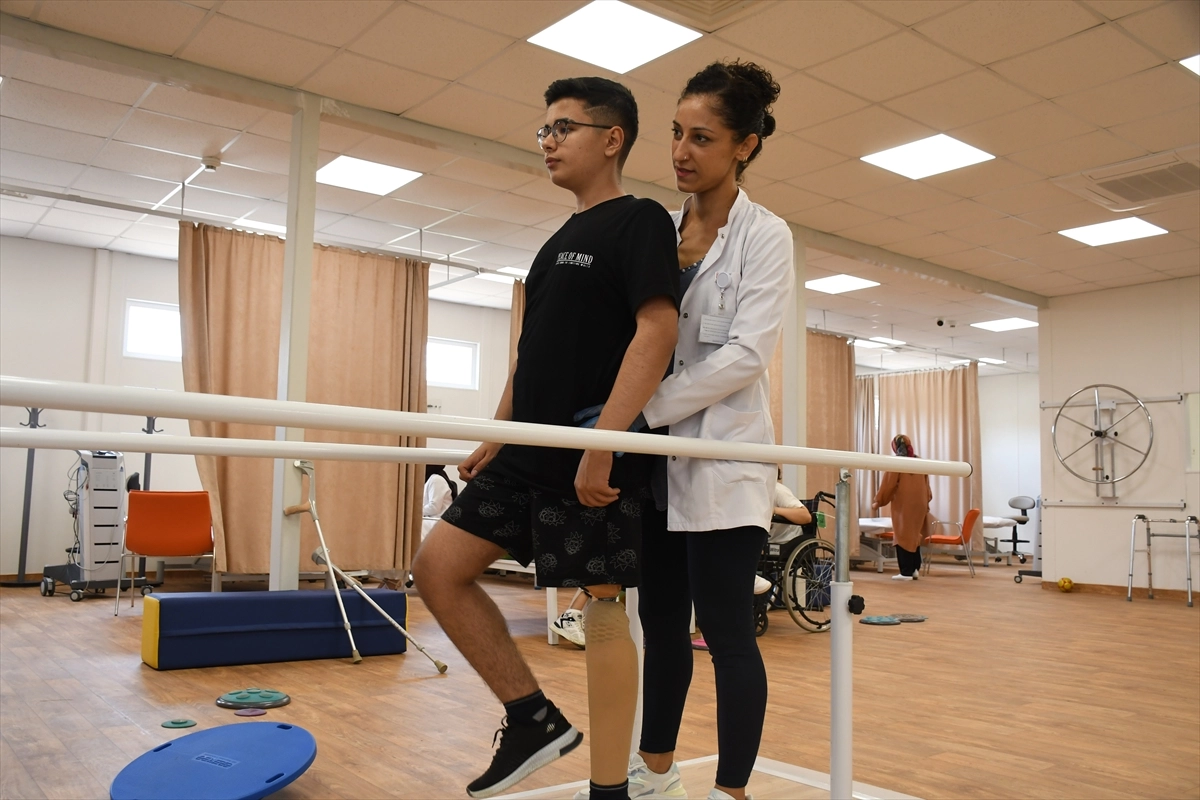 ÇOİM'de yapılan tetkiklerin ardından yaklaşık 1 yıl önce protez bacağına kavuşan ve koltuk değneğiyle yürümeye başlayan Berkay, merkezde fizik tedavi görüyor.