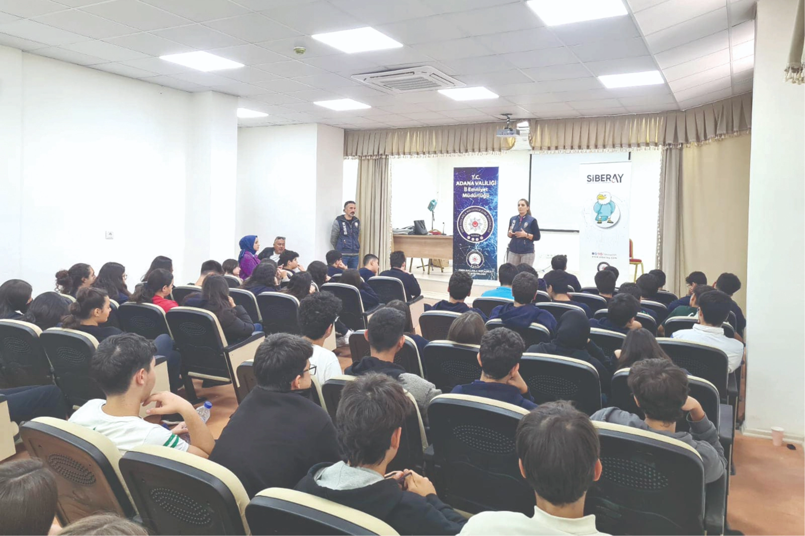 Adana İl Emniyet Müdürlüğü’ne bağlı Siber Suçlarla Mücadele Şube Müdürlüğü tarafından bilgilendirme çalışmaları devam ediyor. Şehit Abdullah Aydın Emer Anadolu Lisesi ve Şehit Cafer Keşan Anadolu Lisesi’nde SİBERAY ekipleri öğrencilerle bir araya geldi.