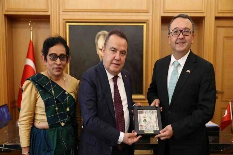 Sri Lanka Demokratik Sosyalist Cumhuriyeti’nin Ankara Büyükelçisi Saranya Hasanthi Urugodawatte Dissanayake, Antalya Büyükşehir Belediye Başkanı Muhittin Böcek’i ziyaret etti. Tarım ve turizmin iki ülkenin ortak sektörleri olduğunu söyleyen Başkan Böcek, “Ticaret başta olmak üzere sosyal ve kültürel anlamda iş birliği ve etkinlikler yapabiliriz” dedi.