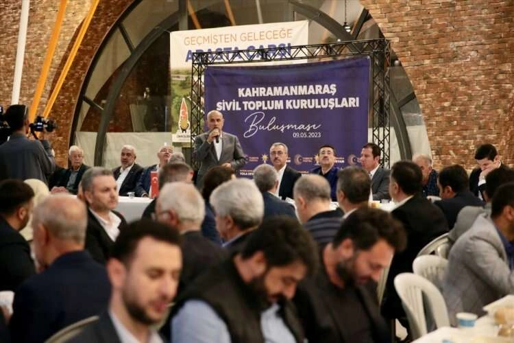 "Aslında burada bir siyasi tercih veya bir siyasetle ilgili bir tercihten ziyade bu memleketin bir varoluş mücadelesi içerisinde olduğunu tıpkı büyüğümüz, ecdadımız, atamız, Sütçü İmam'ın 31 Ekim 1919'da attığı o ilk kurşun ne anlam ifade ediyorsa bu şehrin ve dolayısıyla ülkenin istiklali ve istikbali adına 14 Mayıs'ta aynı şekilde önem arz ediyor. Bu seçim herhangi bir seçim değil. Bu seçim gündem belirleyen bir ülke haline gelmiş Türkiye'nin, tekrar gündemi belirlenen ülke haline gelmesini isteyenlere karşı Sayın Cumhurbaşkanımızın milletimizi yani sizleri, bizleri arkasına alarak verdiği mücadelenin yeni Türkiye yüzyılında da devam edip etmemesi mücadelesidir. Eğer biz 'yeter artık burada duralım' diyeceksek ki, Allah muhafaza, o zaman biz yeniden başa dönmüş oluruz. Bu ülkeye biçilen rol, bu ülkenin muhasır medeniyetlerinin seviyesinin üzerine çıkması değil, o ağa babaları dışarıda olanların trenlerine bizim vagon olmamızı istiyorlar. Artık o büyüğü geçti. Biz vagon olmak istemiyoruz. Biz kişiliğiyle, kimliğiyle, iradesiyle, geleceğiyle, her şeyiyle artık 'bu dünyada bu yerkürede biz de varız biz de artık bu dünyanın kaderini belirleyen önemli bir ülkeyiz' diyoruz. Bunu demeye hakkımız var mı? Var. Bizim ecdadımız bunu 600 yıl yapmış."