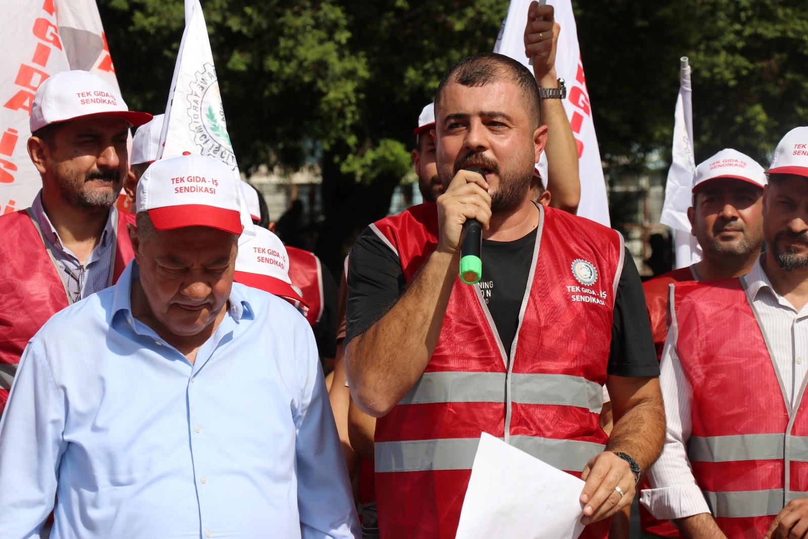 Tekgıda-İş Sendikası, sadece sendika üyesi oldukları için işten çıkarılan 146 işçiye destek vermek amacıyla 81 ilde basın açıklamaları gerçekleştirdi. Tegıda-İş Sendikası Adana Şube Başkanı İbrahim Sani Gökmen, işverenin sırf sendikalı oldukları için 146 işçinin haksız yere işten çıkartıldığını belirtti. Gökmen, "Sendikamız artık daha aktif ve etkili eylemlerle mücadele etmeye ve tüketimden gelen gücünü kullanmaya karar vermiştir," dedi.