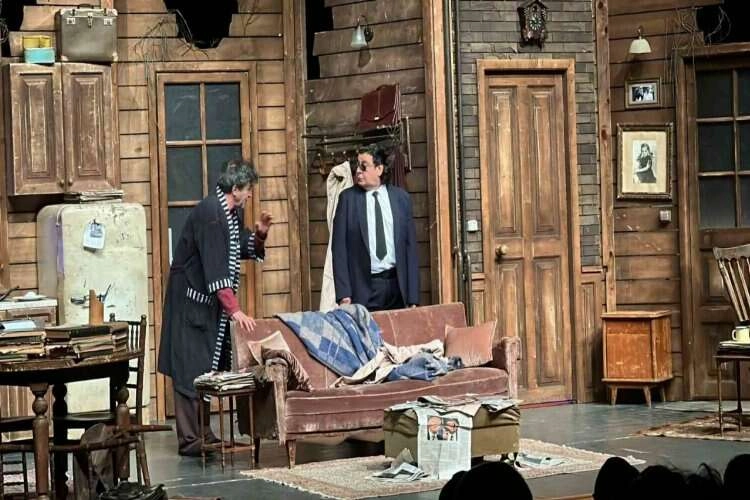 DÜZCE (İHA) – Ünlü oyuncular Levent Ülgen ve Ahmet Galip Erdal’ın oynadığı “Halktan Biri” tiyatrosu Düzce’de sahnelendi.