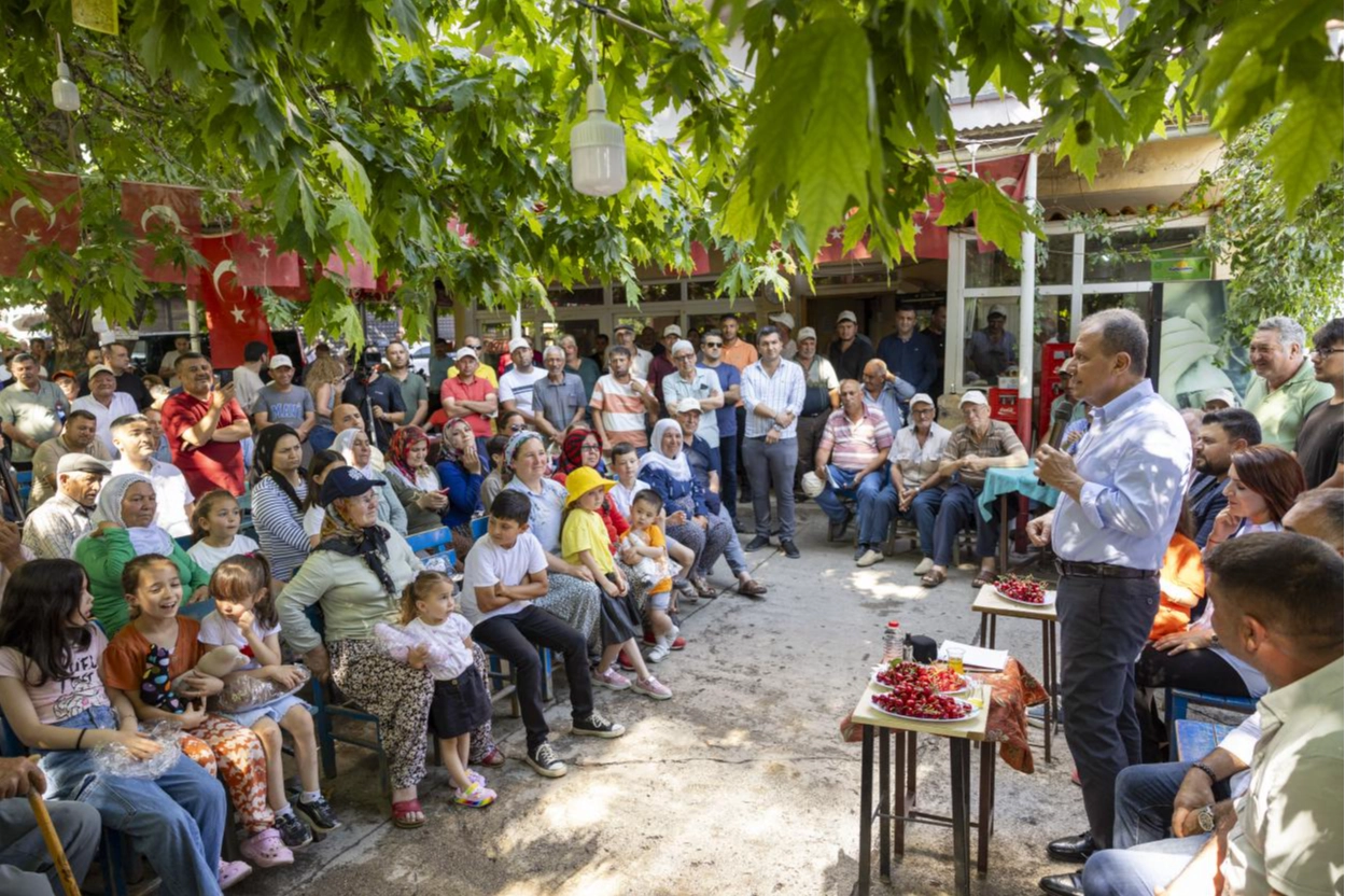 SEÇER: “YETER Kİ SEN ÜRET, BİZDE HER HİZMET VAR”Tepeköy’de bulunan orman yolunun Büyükşehir’in sorumluluk alanında olmamasına rağmen büyük bir kısmını tamamladıklarını söyleyen Seçer, paket atıksu arıtma tesisini de yaptıklarını kaydetti. Aynı zamanda fide-fidan, sulama borusu, gübre desteği ve zirai ilaç gibi birçok desteği de sunduklarının altını çizen Seçer, “Bizde yok yok, yeter ki sen üret. Özellikle kadınları önemsiyoruz, kadınlar çalışsın, üretsin ve eve katkı yapsın. Aynı zamanda tarımda Güneş Enerjisi Santrali (GES) desteğini de açıklamıştım. Siz en büyük parayı elektrik faturasına ödüyorsunuz. GES projesi yapın, bizden proje desteği alın. Biz verdiğimiz sözü mutlaka yerine getireceğiz” diyerek çalışmaya devam edeceklerini vurguladı.