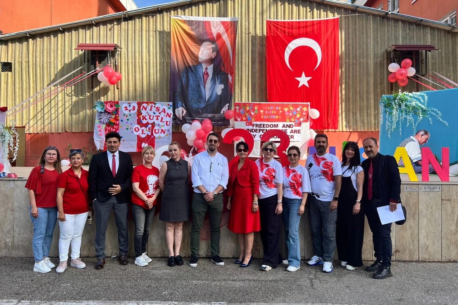 Bando takımını. Okula girişiyle başlayan tören halk oyunları ekibinin gösterisi, öğretmen ve öğrencilerin hazırladığı şiir, şarkı, keman gösterisi ve Türkçe öğretmeni Muzaffer Sarıtürk’ün okuduğu şiirle şölen devam etti. Türkçe öğretmeni Fatma Özkan Hallaçoğlu günün anlam ve önemine binaen bir konuşma yaptı.