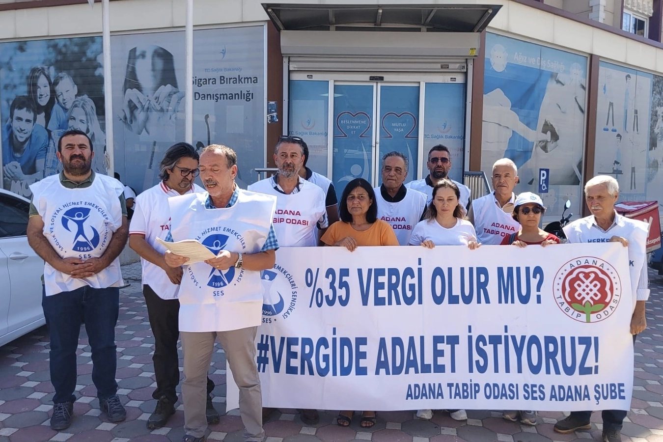 İlkhaber Gazetesi'nden Abdurrahim SAĞ'ın haberine göre; Adana Tabip Odası ve SES Adana Şubesi tarafından yapılan eylem bu hafta Selahattin Eyyübi Sağlıklı Hayat Merkezi önünde gerçekleşti. Burada sağlık çalışanları adına bir açıklama yapan SES Adana Şube Başkanı Erol Eren, çalışanlardan alınan yüksek vergilere vurgu yaptı. Özellikle, yüksek gelir elde eden kesimlerin vergi kaçırdığına, çalışanların ise büyük bir vergi yükü altında ezildiğine vurgu yapan Eren, “ Gelir İdaresi’nin verilerine göre, 2021-2023 yılları arasında yapılan tekne ve yat satışlarında büyük miktarda vergi kaybı tespit edildiği dile getirildi. 15 bin gerçek kişi ve 1527 şirketin vergi beyanları ile gerçek satış fiyatları arasındaki farklar sonucunda 1.4 milyar liralık kayıt dışı hasılat elde edildiği bildirildi” dedi.