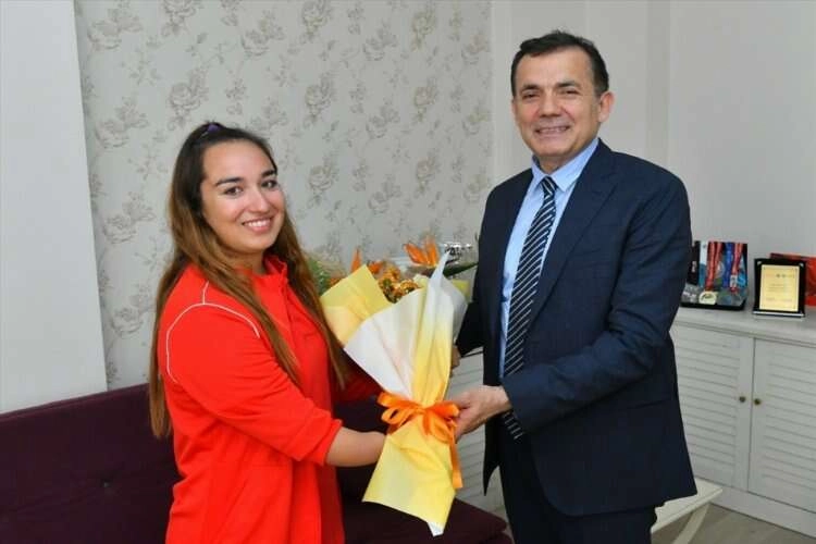 Belediyeden yapılan açıklamaya göre, Özyiğit, 19-23 Ekim'de Hiroşima'da gerçekleştirilen şampiyonada dünya ikincisi olarak gümüş madalya kazanan Miray'ı evinde ziyaret etti.