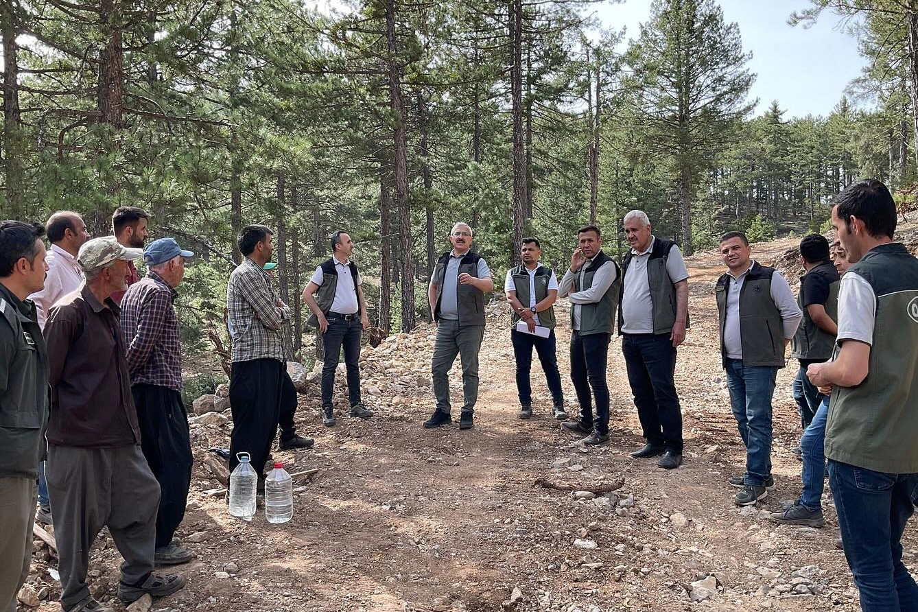 Adana Orman Bölge Müdürü Mahmut Yılmaz, Bölge Müdür Yardımcısı Ali Göçer ve Makine İkmal Şube Müdürü Mesut Serter, Saimbeyli Orman İşletme Müdürlüğünü ziyaret etti. Mahmut Yılmaz, İşletme Müdürü Ayhan Uyaroğlu ve işletme şefleriyle birlikte Çamoluk Orman İşletme Şefliğinde, silvikültürel faaliyetler ile üretim çalışmaları devam eden karaçam tohumlama kesimi sahasında incelemelerde bulundu.