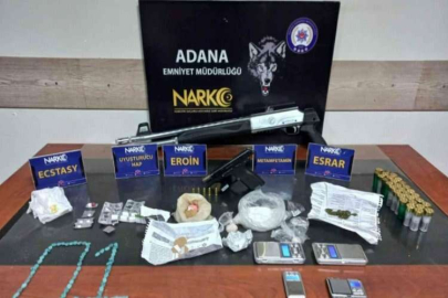 Adana Emniyet Müdürlüğü Narkotik Suçlarla Mücadele Şube Müdürlüğü ekipleri, Yüreğir ve Seyhan ilçesindeki iki evde uyuşturucu madde satışı yapıldığı bilgisine ulaştı. Ekipler, şüpheli Ö.K.’nin Havutlu Mahallesi, V.Ş.’nin ise Namık Kemal Mahallesi’ndeki evlerine operasyon düzenledi. Ö.K. ile V.Ş. gözaltına alınırken, adreslerde yapılan aramalarda 128 metamfetamin, 45 gram eroin, 97 uyuşturucu hap, 5 gram esrar, 4 hassas terazi, ruhsatsız tabanca ve pompalı tüfek ele geçirildi.