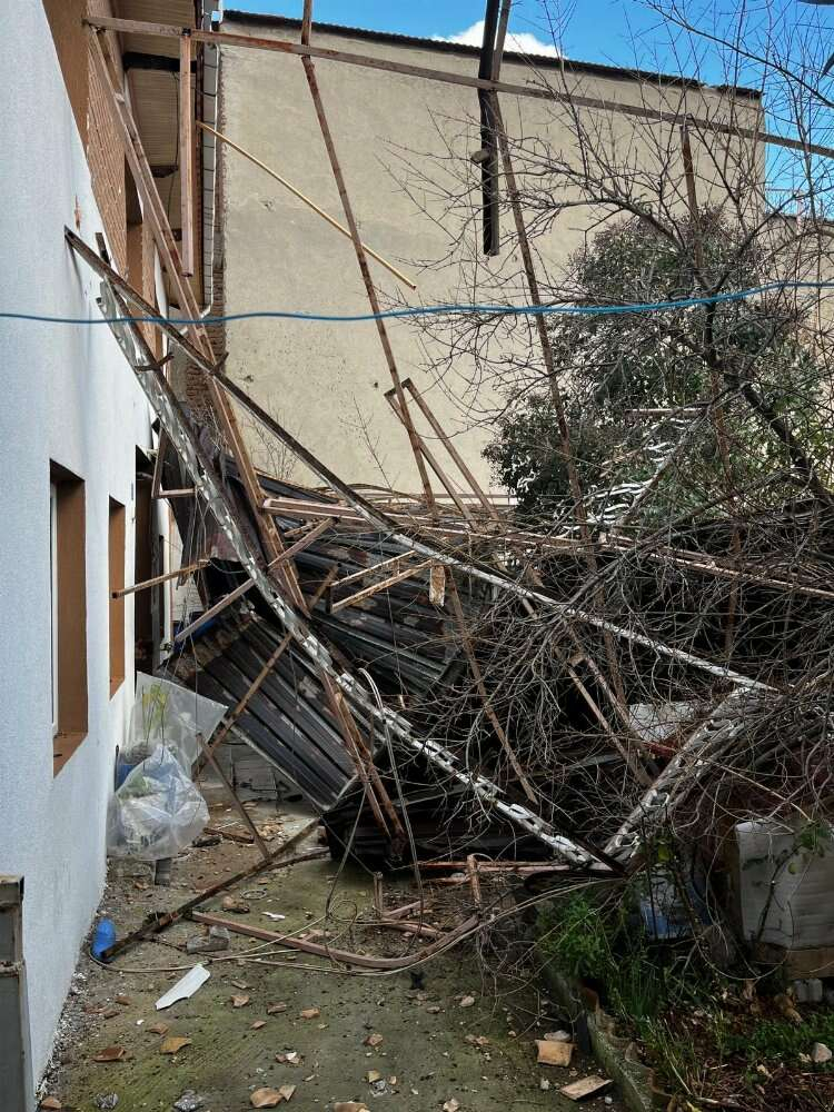Çatılardan kopan parçalar bazı araçlara zarar verdi.