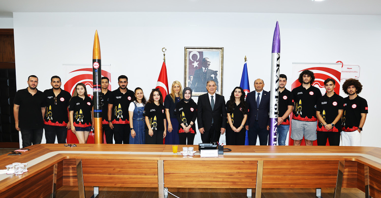 Adana Alparslan Türkeş Bilim ve Teknoloji Üniversitesi Rektörü Prof. Dr. Adnan Sözen, Teknofest 2025’te finale kalan ATÜ Bürküt ve Akay FOF Roket Takımlarını makamında kabul etti. 1175 başvuru ve 7252 yarışmacı arasından sıyrılarak Orta İrtifa Roket Yarışması’nda finale kalan 24 takım arasında yer alan ATÜ ekipleri, elde ettikleri başarıyla üniversiteyi gururlandırdı.