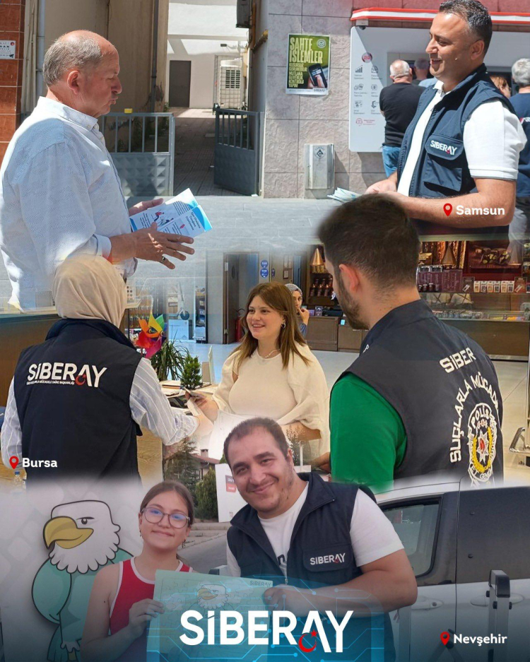 Siberay'ın paylaşımında şu ifadelere yer verildi: “Bilinçli teknoloji kullanımı, güncel siber risk ve tehdit, güvenli sosyal medya kullanımı; Farkındalık faaliyetlerimizle halkın yoğun olduğu yerlerde ve alışveriş merkezlerinde her yaştan vatandaşlarımızı bilgilendirmeye devam ediyoruz.”