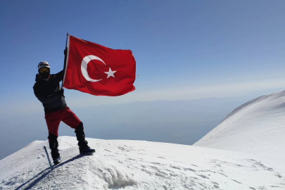 Aydınlı profesyonel dağcı Berkay Çetin, Türkiye'nin çatısı olarak bilinen 5 bin 137 metre rakımlı Ağrı Dağı'na tırmandı.
