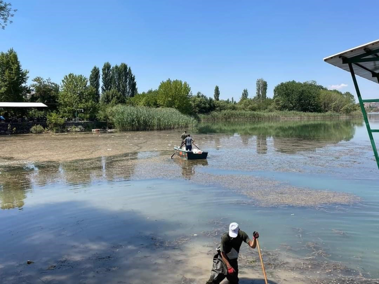 Tarım ve Orman Bakanlığı Gölbaşı Doğa Koruma ve Milli Parklar Şefliği ekipleri, Gölbaşı gölü yüzeyinde biriken çevresel atıkları ve çöpleri temizlemek için yoğun bir çalışma yürütüyor.