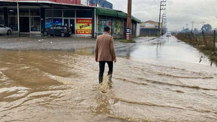 Aydın genelinde etkili olan sağanak yağış hayatı olumsuz etkiledi. Yağmura hazırlıksız yakalanan vatandaşlar saçak altlarına sığınmaya çalışırken, oluşan su birikintileriyle göle dönen yollarda da sürücüler zor anlar yaşadı. Ata Mahallesi’ndeki Gıdacılar Çarşısı’nda da yollar adeta göle döndü, bazı işyerlerine su bastı. İlerlemekte güçlük çeken otomobillerden bazıları ise yolda kaldı, araçların plakaları düştü. Gıdacılar Çarşısı yolunu kullanan vatandaşlardan Ali Aydın ise aracının plakasının düştüğünü fark etti. Ayağına çizmeleri giyen Aydın, göle dönen yolda dakikalarca aracının plakasını arasa da başarılı olamadı. Aydın düşen plakayı bulmayınca aracına binerek evinin yolunu tuttu.